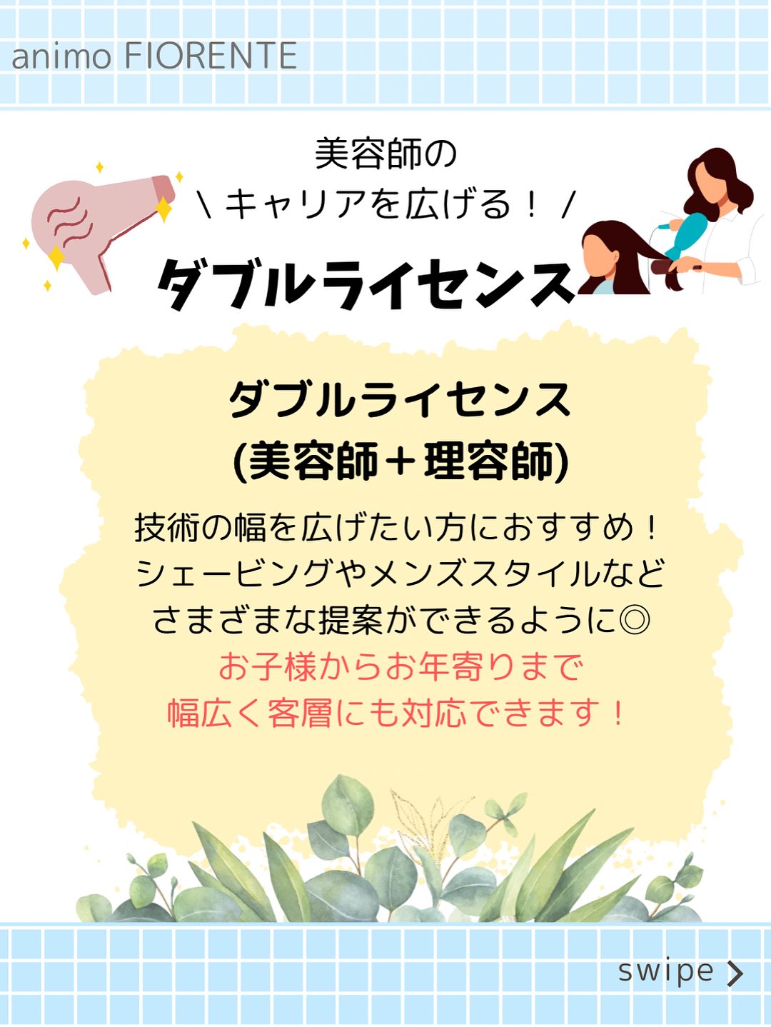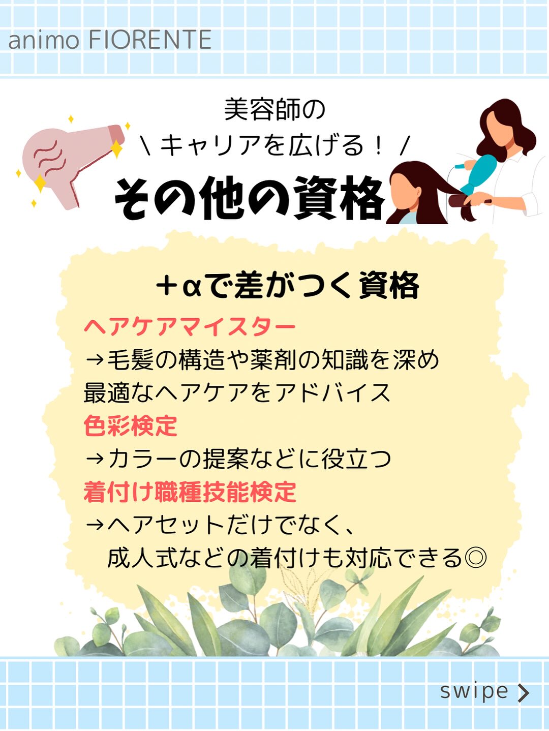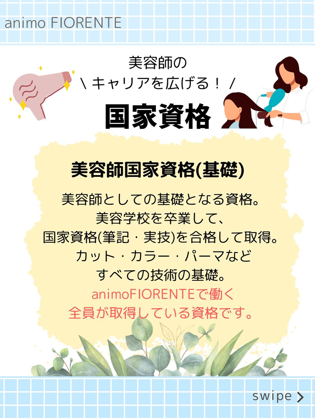 美容専門学生新卒募集 美容師中途採用 美容師国家資格 管理美容師 理容師資格 色彩検定 ヘアケアマイスター