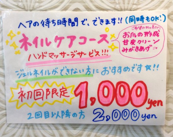 ハンドマッサージ付きのネイルケアキャンペーンを実施中☆