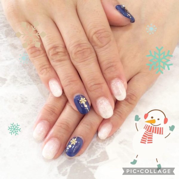 こんにちは😊 東川口店の太田です! 冬デザイン💅 ネイビーのカラーが ストーンを引き立たせてくれてます✨