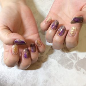 こんにちは! 東川口店の中谷です! ヘアアシスタントの増尾のネイルをご紹介いたします推しカラーの紫だ・・・・・・