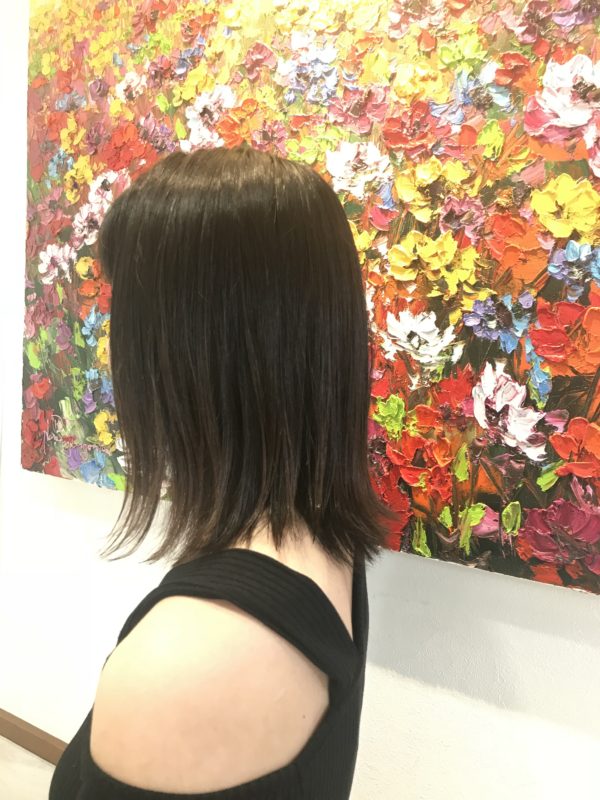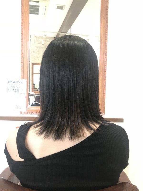 前回 生まれて初めての縮毛矯正をさせていただいたお客様です。 毛先には半年前のカラーが残っていたので、 そこだけ減力させた薬を使い 傷みを最小限に抑えました! サラツヤですっ!