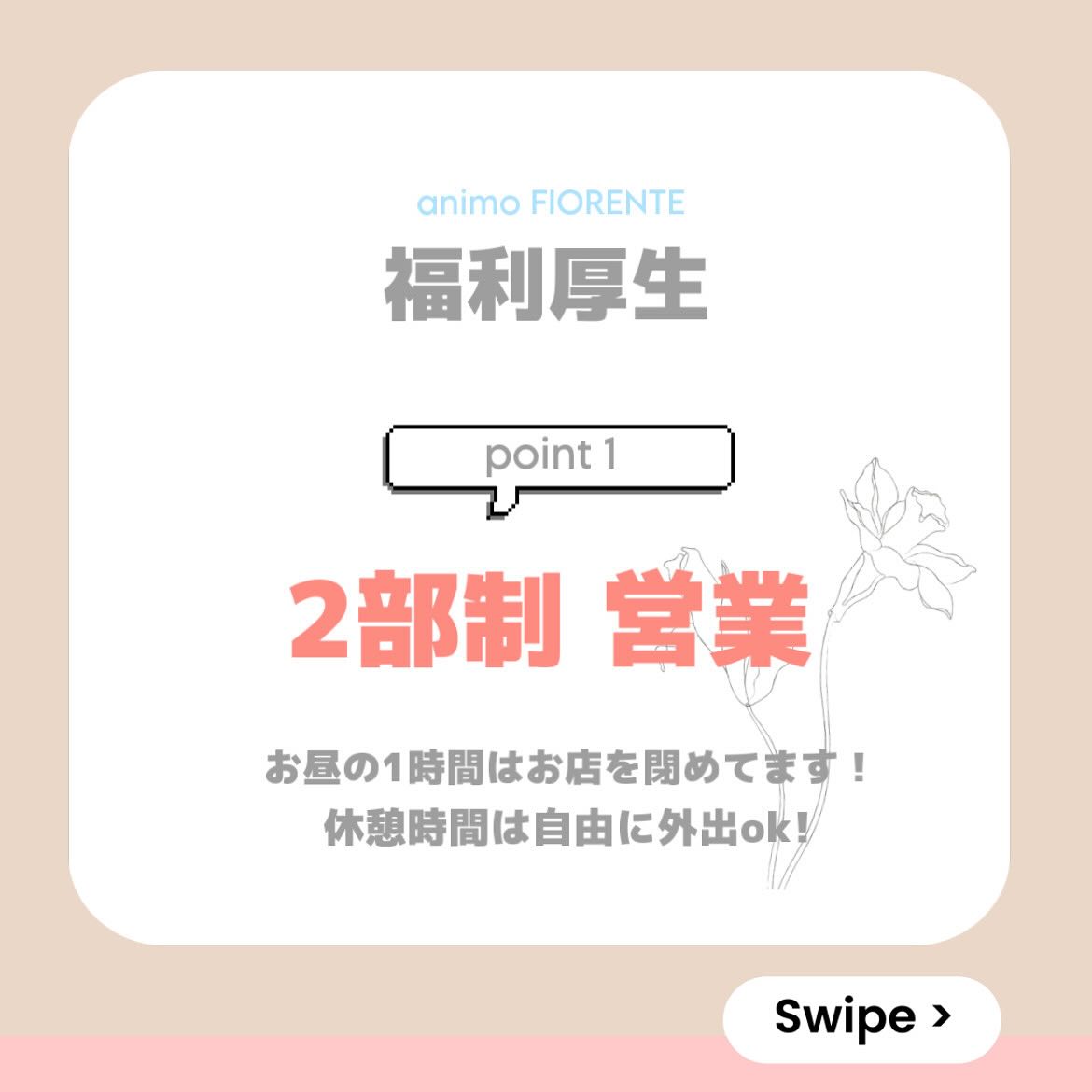 美容室アニモフィオレンテ及びanimoグループでは美容師スタッフを募集中です 日曜定休、18時まで他、女性が働きやすい環境です