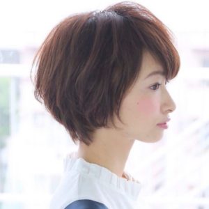 こんは゛んはアニモ蒲生店馬見塚て゛すレイヤーを入れたショートスタイル動きの欲しい方はハ゜ーマを軽くかけてもgood耳にかかる長さならショートて゛も女性らしさか゛・・・