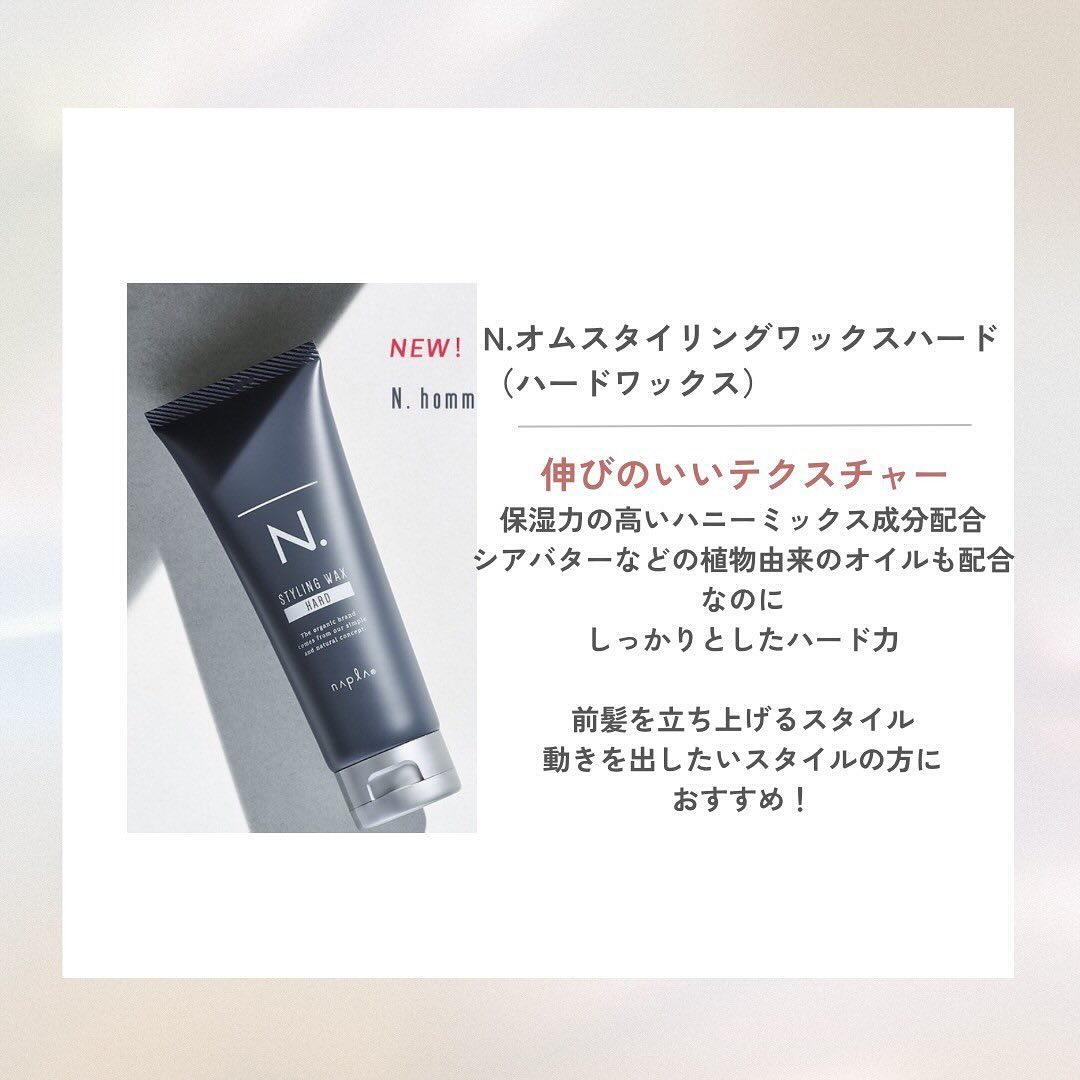 仕上げは、N.オム スタイリングワックスハードで束間が動きを出して