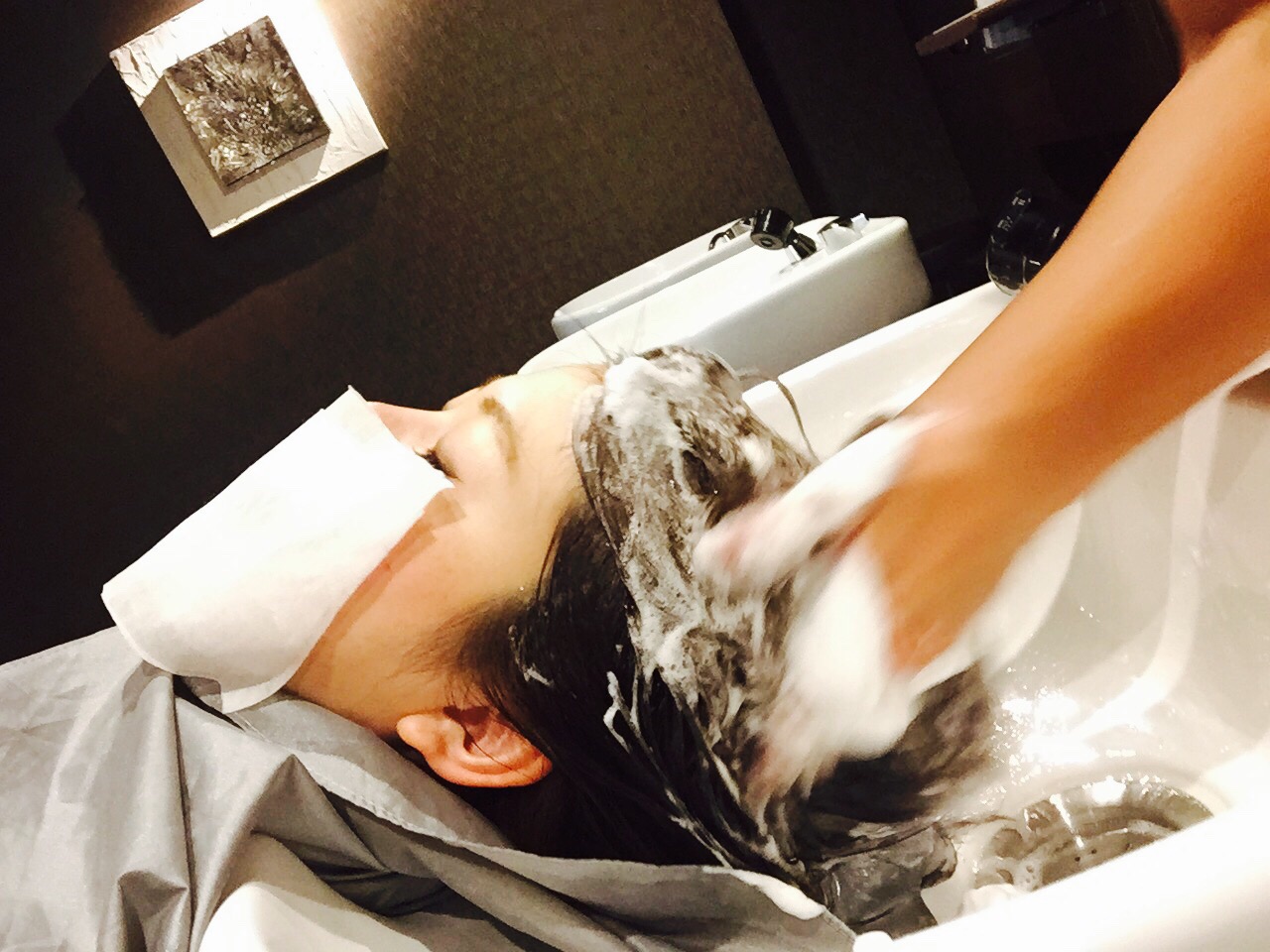 今日は営業前の朝、藤本さんにお店で炭酸ヘッドスパをしてもらいました*\(^o^)/*