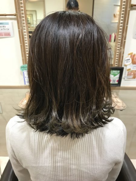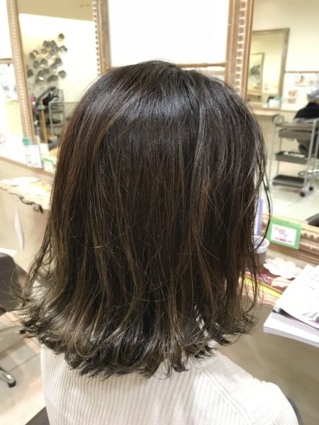 がっつりハイライトでもなくグラデーションでもなく 自然なハイライト、グラデーションでブリーチ剤を使わなくても 流行りのバレイヤージュという技法で 立体感と毛先の色味を変えて外国人風のスタイルに!!