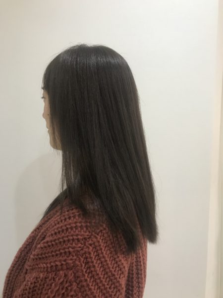 初カラーでカーキアッシュで明るく染めました!赤味が気になる方にオススメです!トリートメントで艶感が増しました!