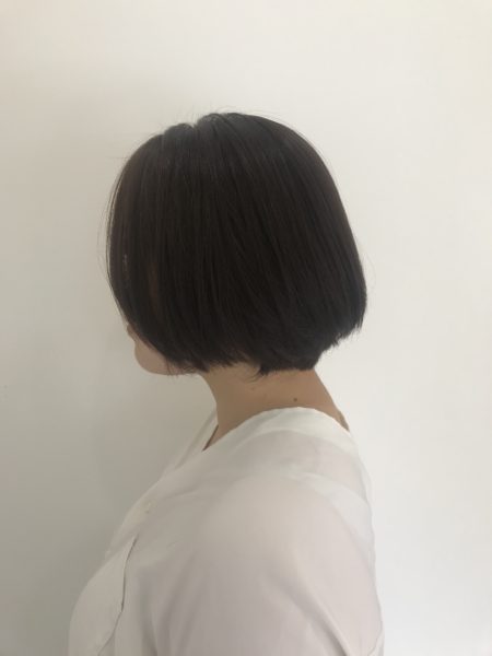 軽いボブスタイルです!表面にレイヤーをいれてふんわり動きの出るスタイルです!カラーは8トーンのナチュラルブラウンで、スタイリング剤はN.ポリッシュオイルです!