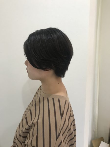 レディースハンサムショートです!襟をタイトに、毛流れを作るため緩くパーマをかけました!カラーはダークアッシュでクールに!