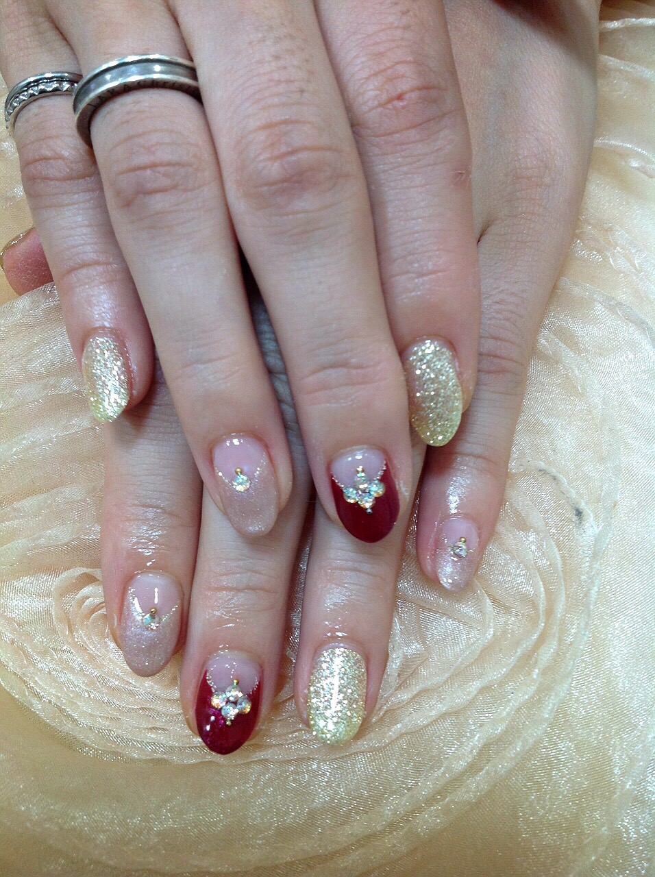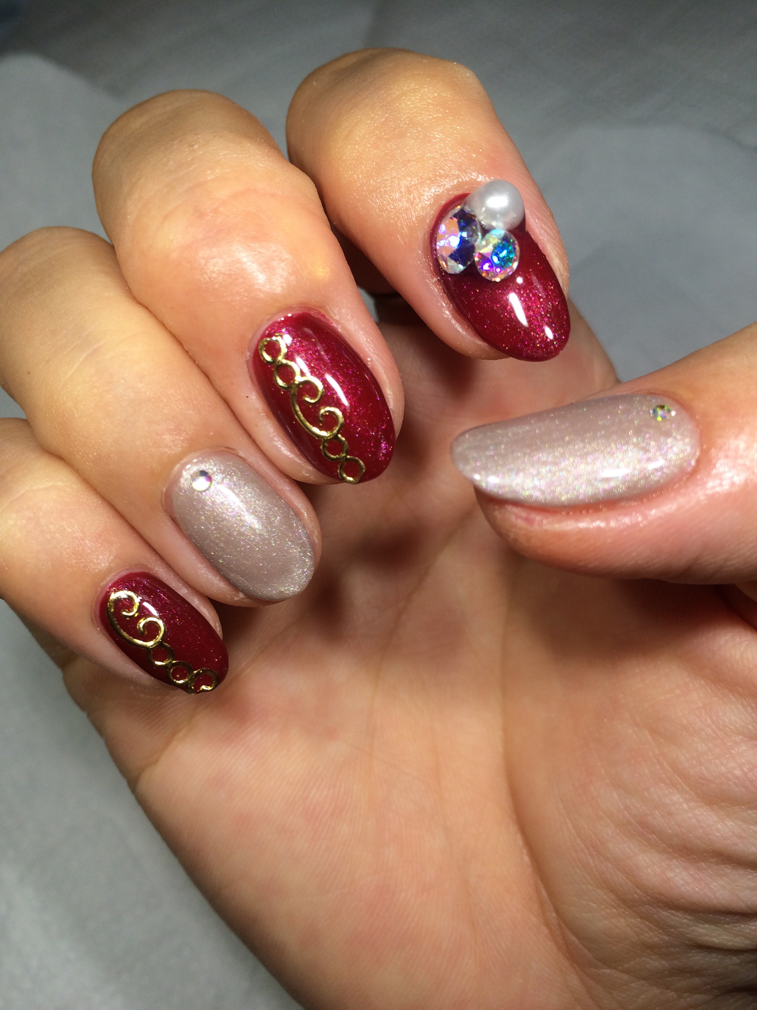 本日ご紹介致しますネイルは大人気のボルドーを使ったネイルです♪