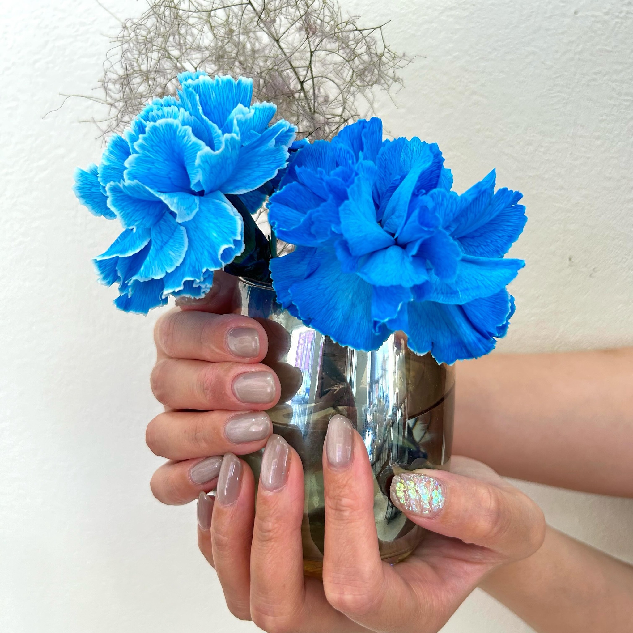 青いお花を頂いたので飾ってみました