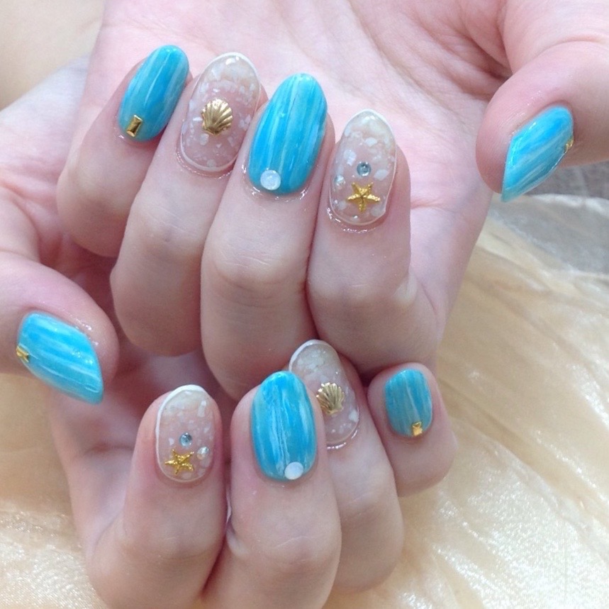 ターコイズブルー、貝殻スタッズ、スターフィッシュ、シェル砕きと、夏アイテムが全て詰まっています( ´͈ ᗨ `͈ )◞♡⃛