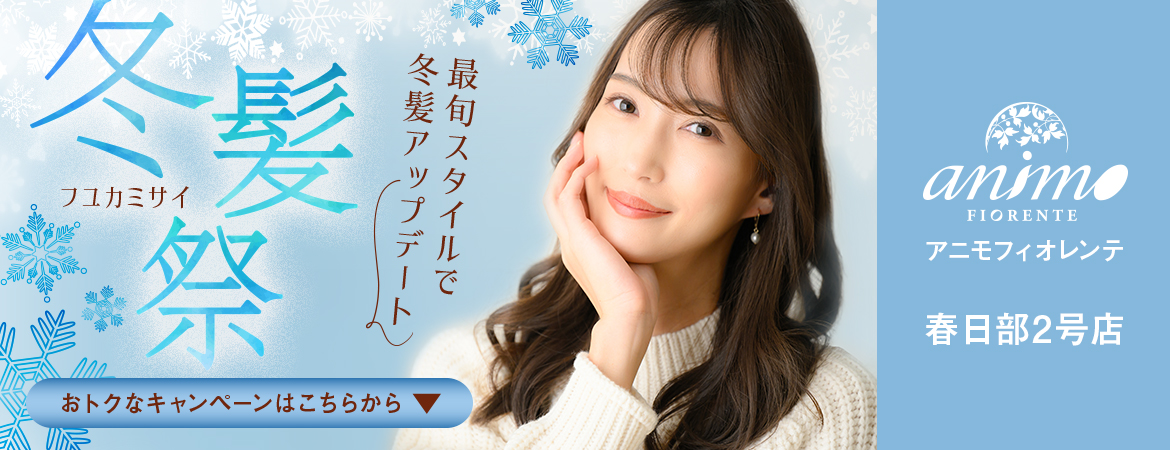 春日部駅西口、大人の上質キレイを提供するアニモフィオレンテ春日部2号店。丁寧なカウンセリングを大切にしていますので、髪の悩み等、何でもお気軽にご相談ください。あなたの魅力を引き出すお手伝いをさせていただきます。