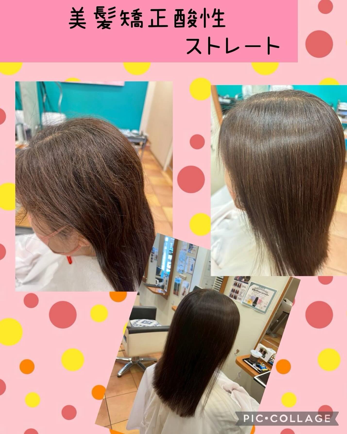 湿度でクセが出やすくフワフワ毛も出て収まりが悪かった髪がこの矯正をしただけで乾かすだけでこのように美髪に変身