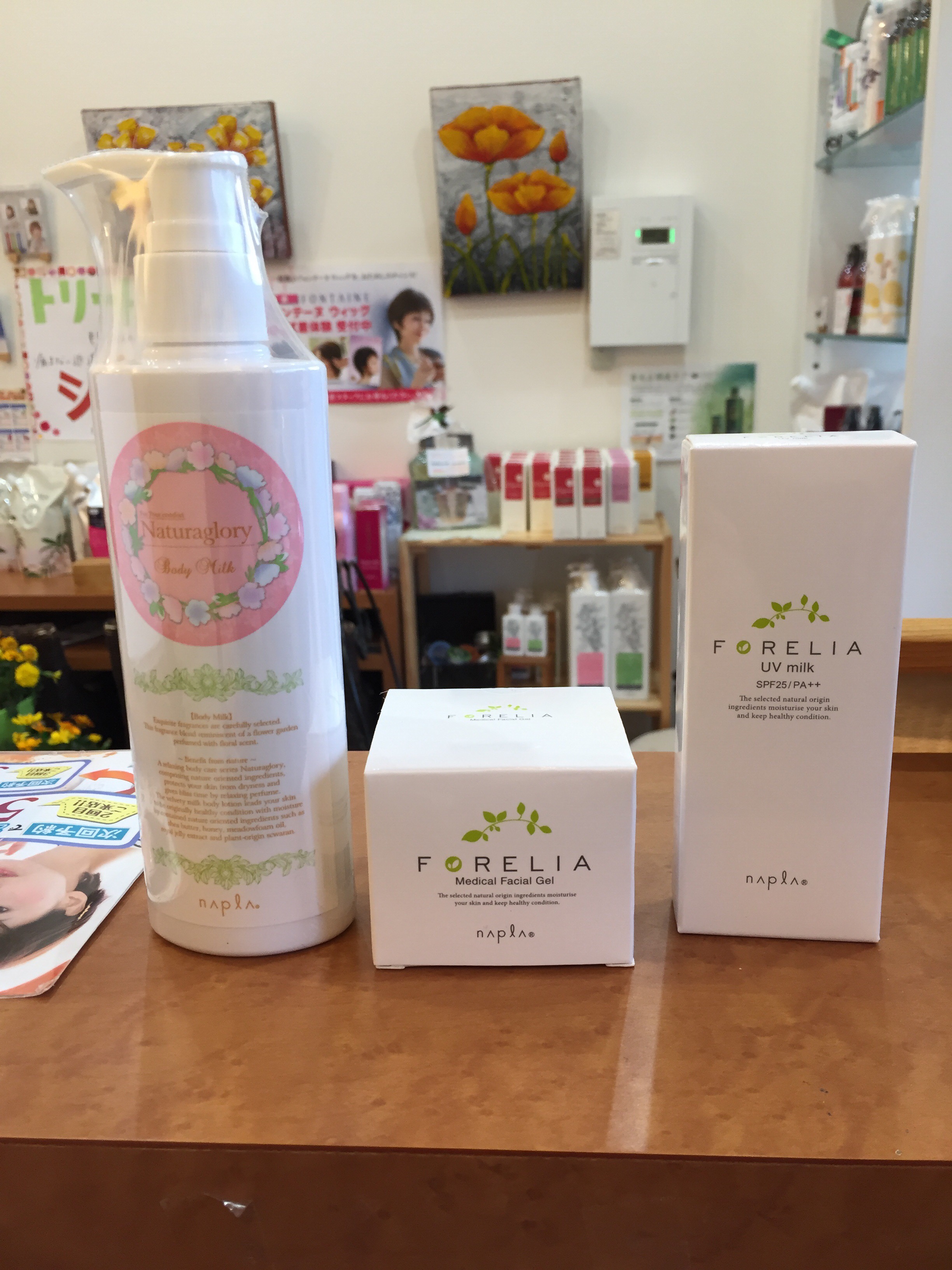 化粧下地クリーム、フェイシャルゲル、ボディークリームも売ってます。冬は乾燥しますのでしっかりケアしたいですね😊