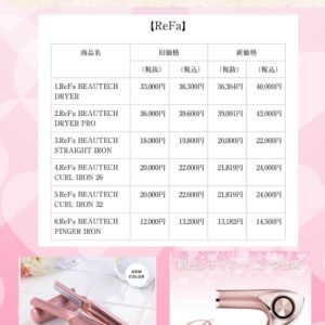 11月より人気のリファが値上げ致します!