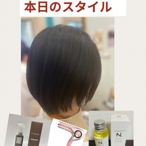 顔まわりを少しだけ短い部分を作り、毛先の重たいところを少し軽くして、カールアイロンで少し動きを出して観ました。いい感じになりました。️࿠・・・