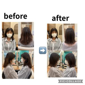 カットモデルで、ボブ系になりました。 軽くて、スッキリして、なによりシャンプー、ドライが楽になりました。大島 リフアシャンプー、トリートメント リフアストレート・・・