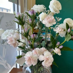 今週の受付のお花です。 白いお花達が清楚に咲いてお客様をお迎えします。 土屋 N. エヌドット ナプラ ミルボン ReFa シックスパッド パワーガンポケット ・・・