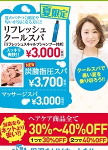 只今ですが今月中で夏場のキャンペーンは終了になります。 まだスパやカラーなどをやられていない方でしたから早めにご連絡くださいませ!