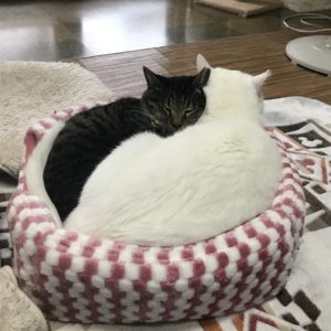 我が家の2匹は丸くなって、寒さをしのいでおります。