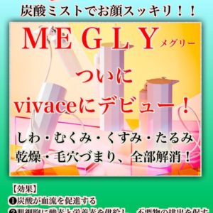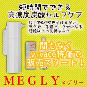 炭酸ミストで即効性のあるフェイシャルケアメグリーが間もなくお取り扱い開始です!!お得に購入出来るチャンスかもしれません入荷の際にはVIVACEのLINEの方でお・・・