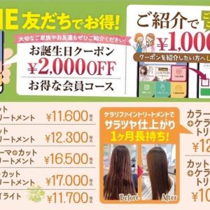 vivaceでは月ごとにお得なキャンペーンをご用意しております! 今月はいつものトリートメントよりワンランク上のケラリファイントリートメントがカラーやカットと一・・・