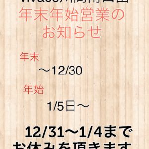 年末年始の営業のお知らせ