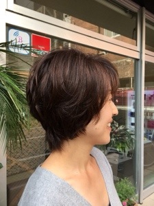 動きの出づらいショートも、ふんわりパーマをかけて、ブワッと乾かすと…