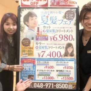こんにちは。アシスタントの鴇田です!夏のキャンペーンのご紹介をします。8月31日までキャンペーン価格でご案内しています!平日はご予約入りやすくなってるので是非お越しくださいお待ちしております(⌒▽⌒)< prevBLOG LISTnext >