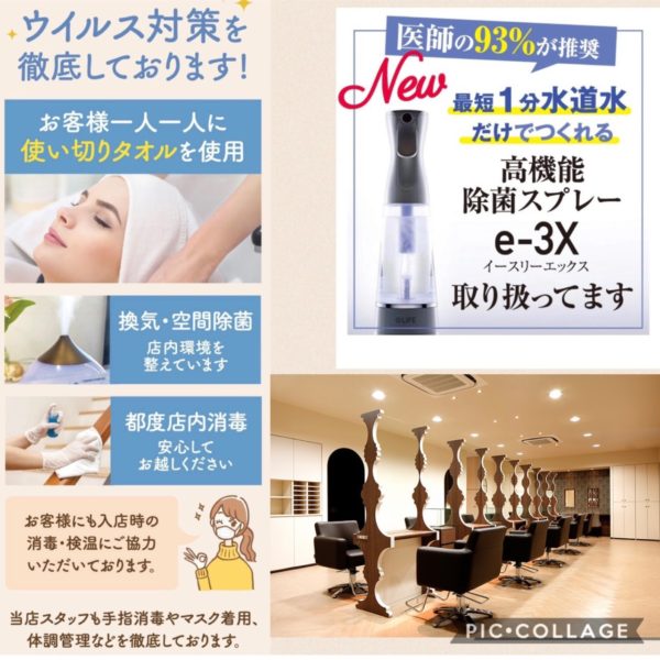アニモフィオレンテでは空調管理、お客様一人一人新しいタオルを使用し、お客様一人一人手指消毒、セット面椅子の消毒、スタッフの出勤前の体調管理、消毒をし、ウイルス対策徹底しております安心してご来店ください。