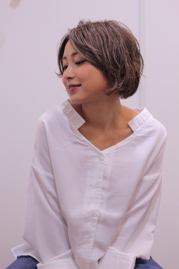 首につかないくらいのボブスタイルは、まとまりが良く、散らして動きを出すのも素敵です。