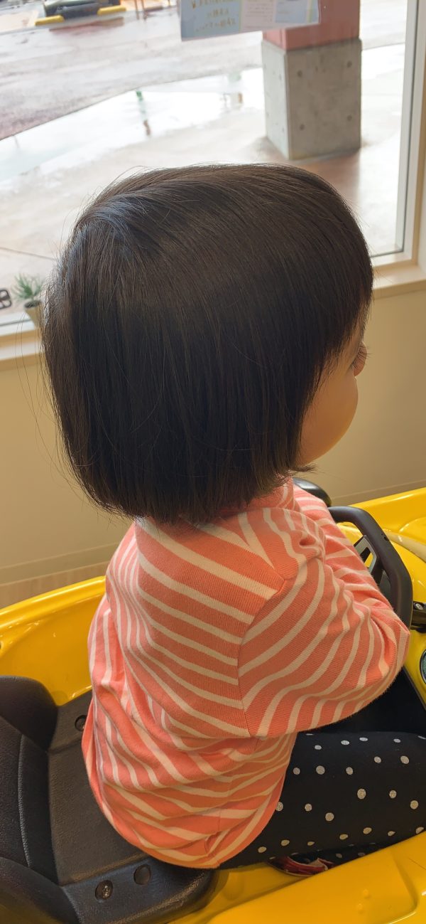 黄色い車に乗って上手に切らせてくれました!