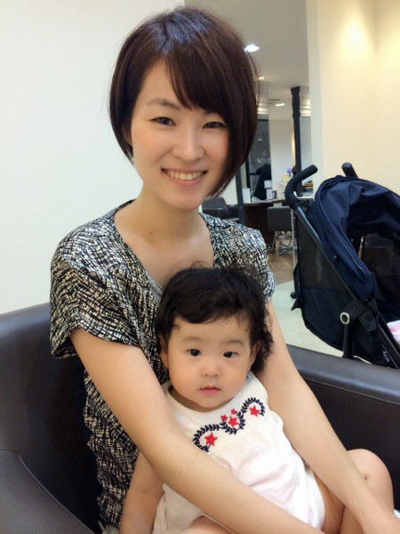 今日は一歳のお子様を連れたママ様がご来店!ママはカラー?カット?トリートメントで、髪もバッサリカット!!