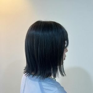 こんにちは アニモフィオレンテ三郷店です 本日は切りっぱなしボブスタイルになります️ ブルー系のハイライトを細めにいれました◎ トップスの色味と合・・・
