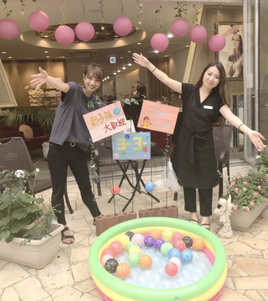 今日はヨーヨーをお店の前において