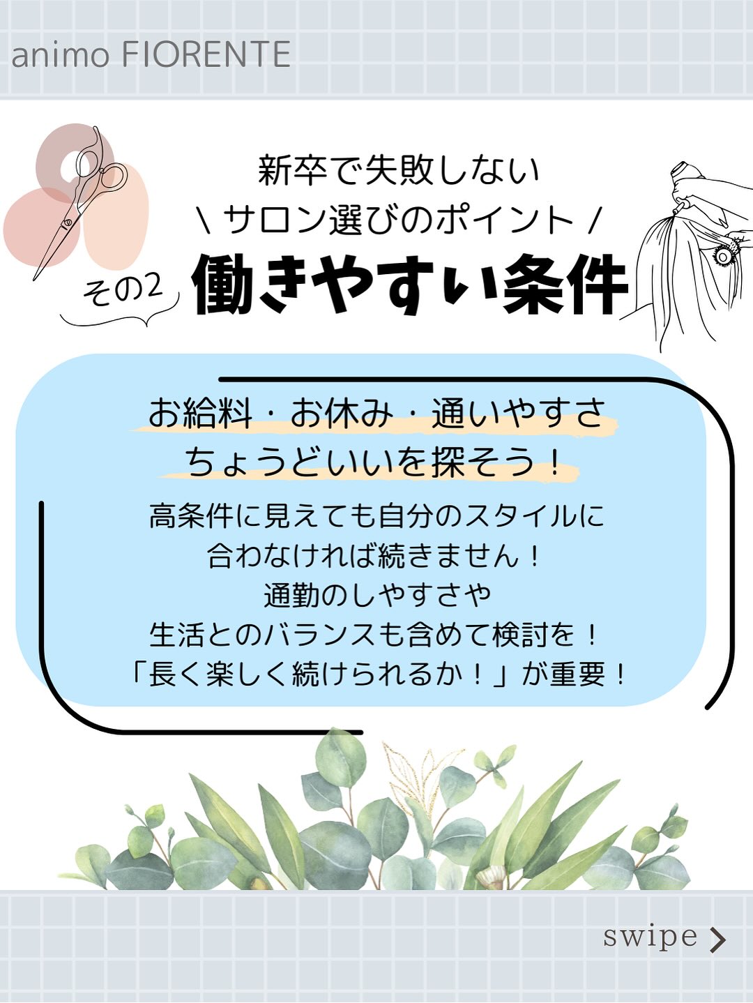 アニモでは美容師が「長く働ける」ことを大切に考えています