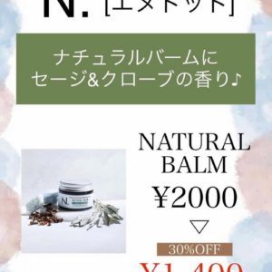 ナチュラルバームに新しい香りが登場しました️ セージ&クローブの香りの良い香りです当店なら人気のエヌト゛ットか゛なんと30%オフに️・・・