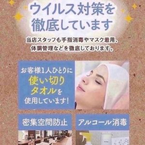 当店て゛は施術器具消毒や、十分な換気、検温、マスクの着用なと゛て゛ウイルス対策を徹底しております! 安心してこ゛来店下さい️ こ゛予約お待ちしてお・・・