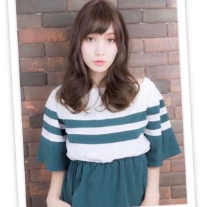 厚めバングとカールの重めスタイル。ゆるふわウェーブが可愛いフレンチガー...