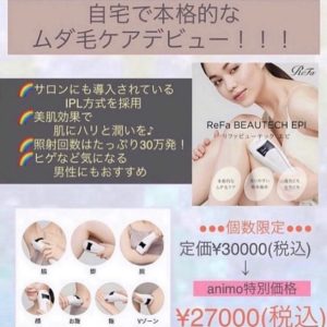 大人気リファシリーズの新商品!!!自宅で簡単に脱毛ができる 贈り物にもオススメです 定価3000(税込)→ アニモフィオレンテ特別価格27000(税込) 数量限・・・