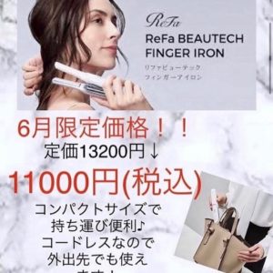 大人気リファシリーズのコードレスヘアアイロンが6月限定の特別価格です!!! 2200円OFF!!! 梅雨時期は、外出先でも気軽に使えるミニサイズのアイロンが大活・・・