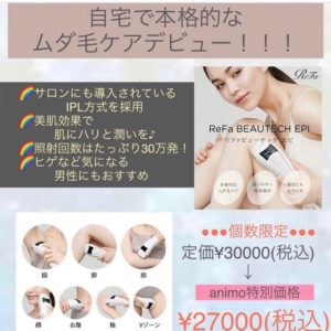 大人気リファシリーズの新商品!!!自宅で簡単に脱毛ができる 贈り物にもオススメです 定価3000(税込)→ アニモフィオレンテ特別価格27000(税込) 数量限・・・
