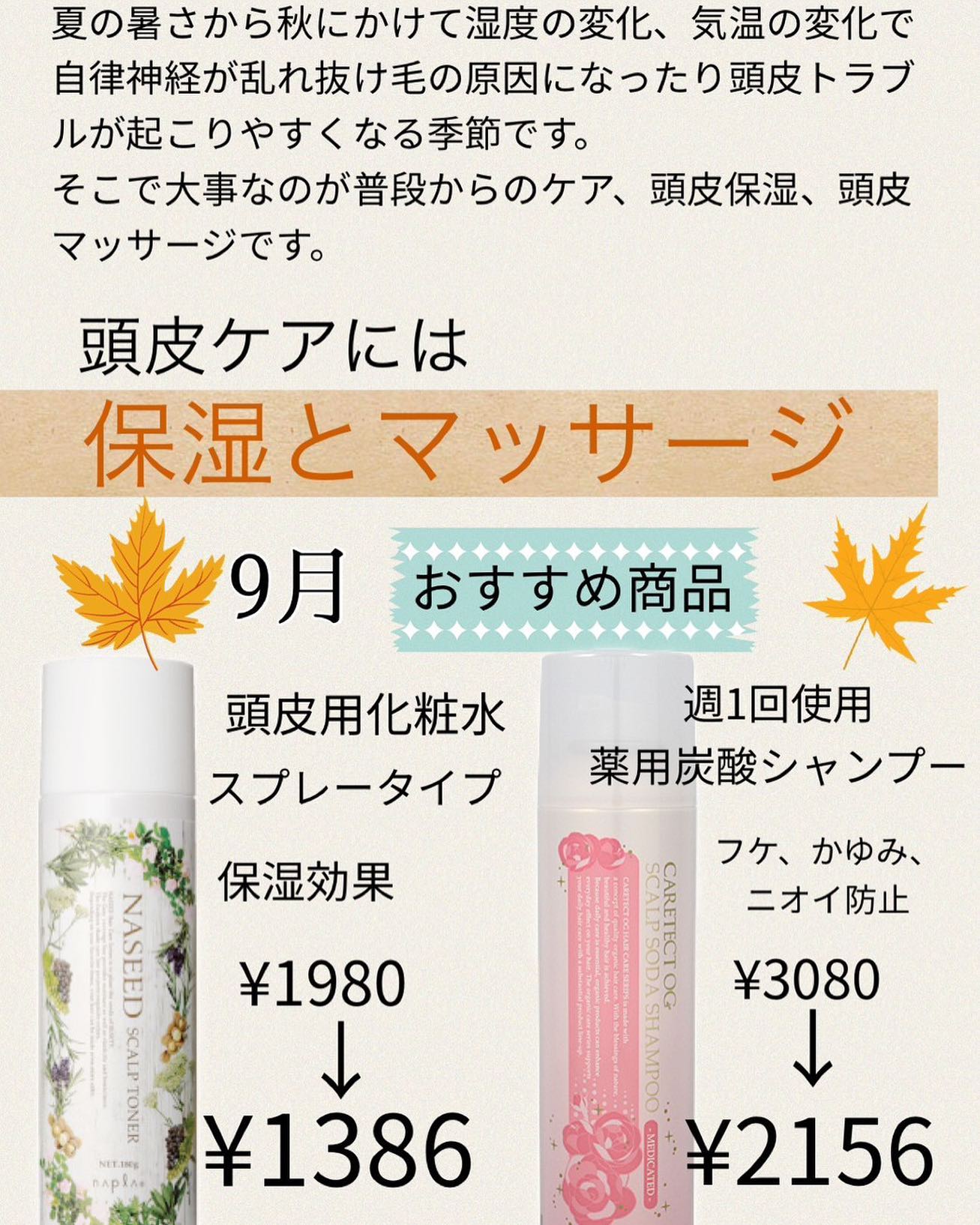 秋は抜け毛が増えてくる時期です