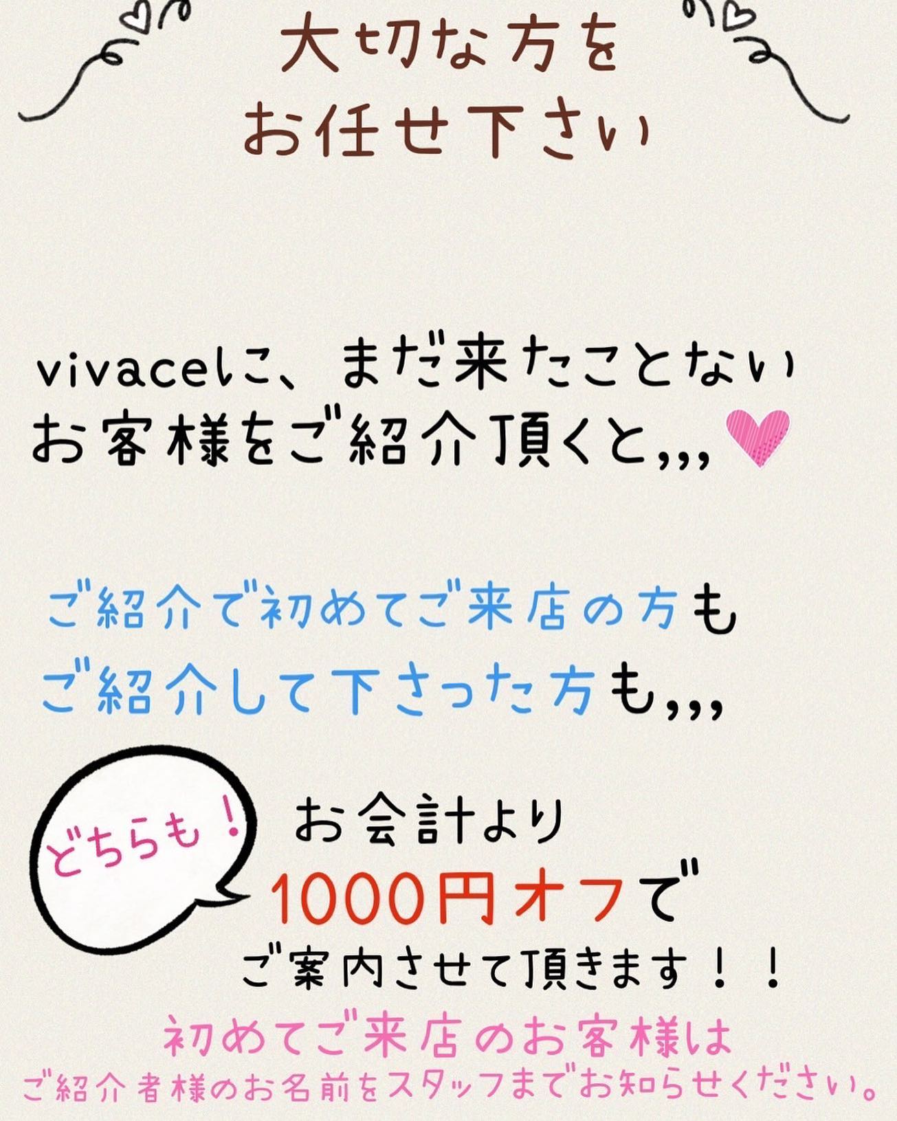 vivaceのご紹介特典をどうぞご利用ください