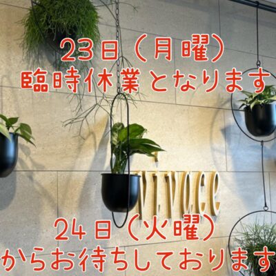 23日は臨時休業となります。 24日から再開になりますのでお待ちしてお...