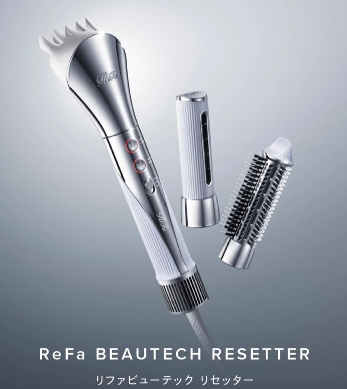Refaビューテックリセッターは美容師さんの手をイメージしたアタッチメントで、髪をかきあげるように根元から立ち上げ温風をためこんでドライ、冷風で素早く冷まして形をキープしてくれます