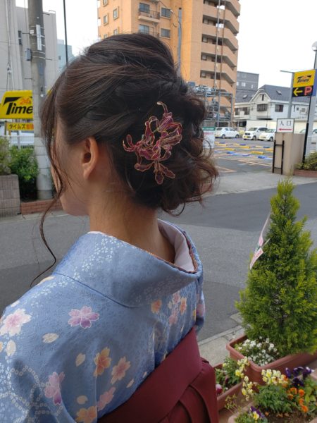 こんばんは! 3月は毎週、卒業式のヘアセットのご予約がはいっており先日やらせていただいたスタイルです! 最近ではくるりんぱ、ねじり、編み込みなどでつくるアップが主流ですよね(^^) 卒業式に限らずお出掛けの際は是非お立ち寄りくださいね☆