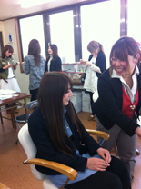 午前中は、サロンに立ち、先輩たちの動きを見て自分に何が出来るか考え、レポートしました。